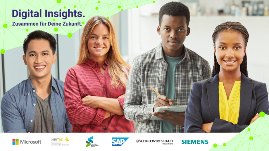 Digital Insights. Zusammen für Deine Zukunft. ist ein gemeinsames Projekt der Unternehmen Microsoft, SAP und Siemens mit den Schulnetzwerken MINT-EC, Netzwerk Berufswahl-Siegel und Schulewirtschaft. Ziel ist es, Schüler*innen fit für ihre berufliche Zukunft in der Tech- und IT-Branche zu machen, ihnen Fachexpertise aus erster Hand sowie hilfreiche Tipps zur Studien- und Berufsorientierung mit auf den Weg zu geben. Teilnehmen können alle Schüler*innen ab der 9. Klasse – natürlich kostenlos. In 2024 gibt es viele neue Termine zu spannenden Themen, sowohl online als auch vor Ort: https://www.mint-ec.de/digital-insights/